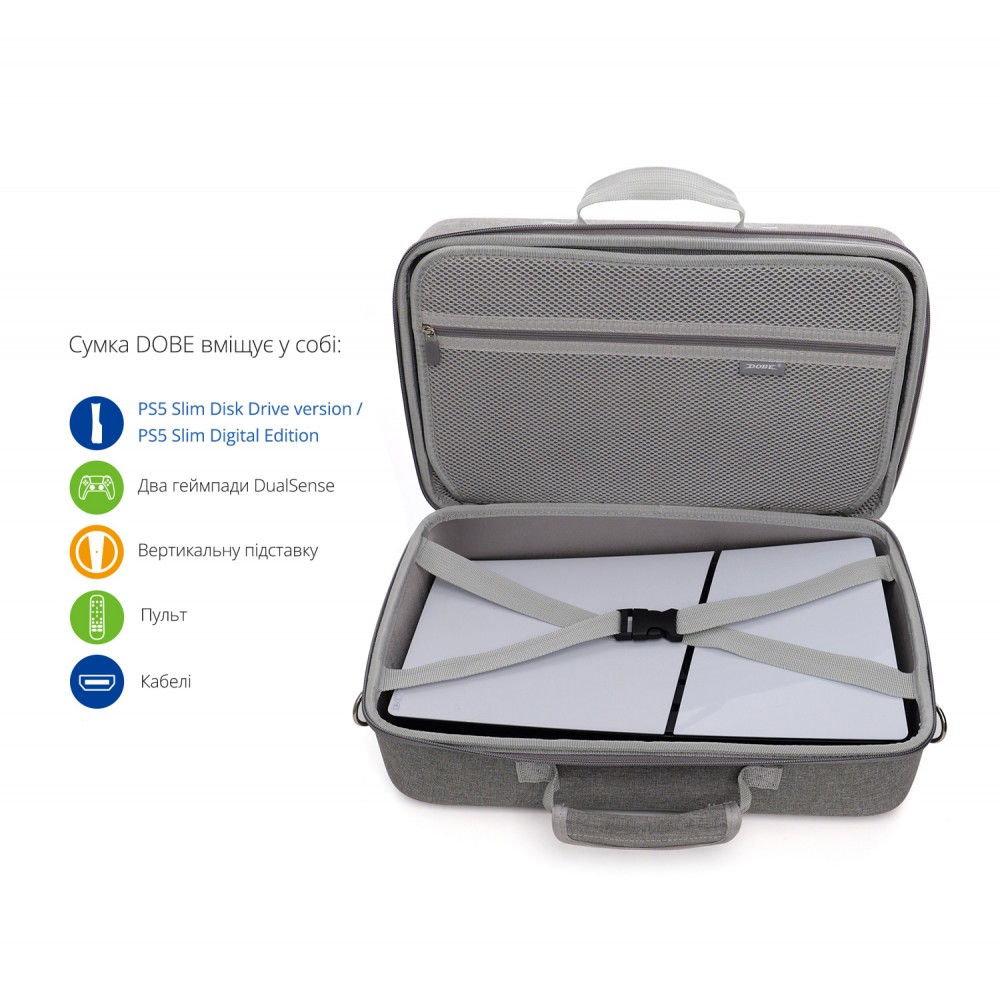 - Сумка DOBE сумісна з двома моделями PS5 Slim: PS5 Slim Disk Drive version / PS5 Slim Digital Edition;