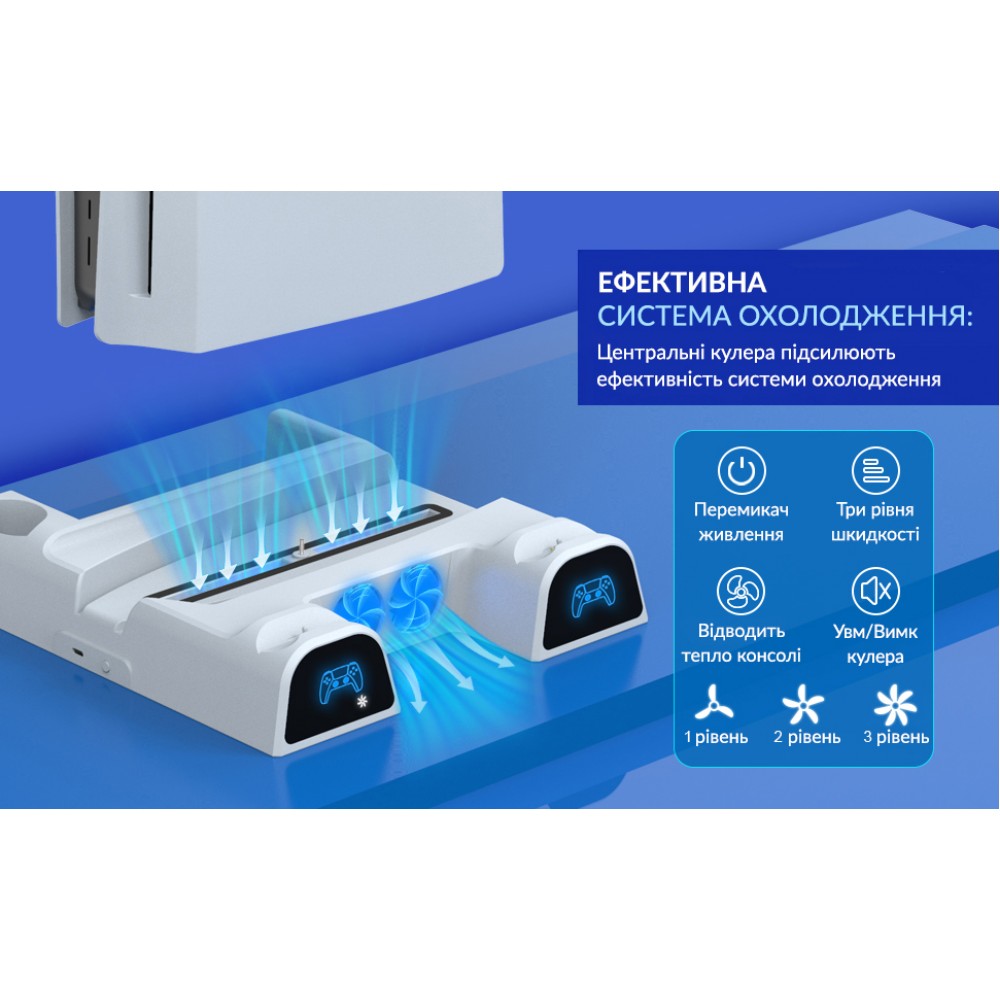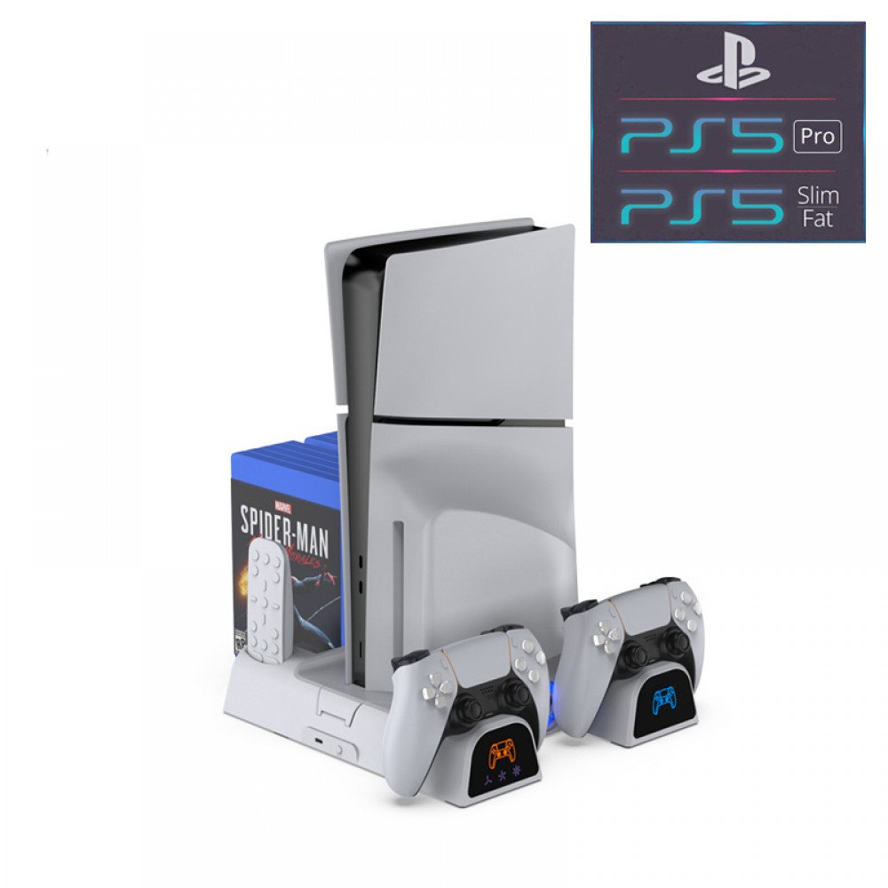 - Підставка DOBE для консолі PS5 / PS5 Slim / PS5 Pro (Disk Drive version/Digital Edition) із зарядною станцією для двох геймпадів DualSense;