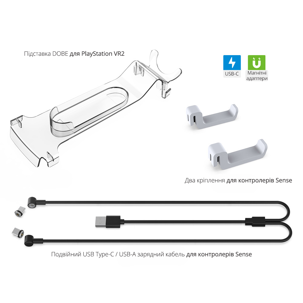 - USB-C магнітні адаптери для зручного заряджання контролерів Sense / DualSense;