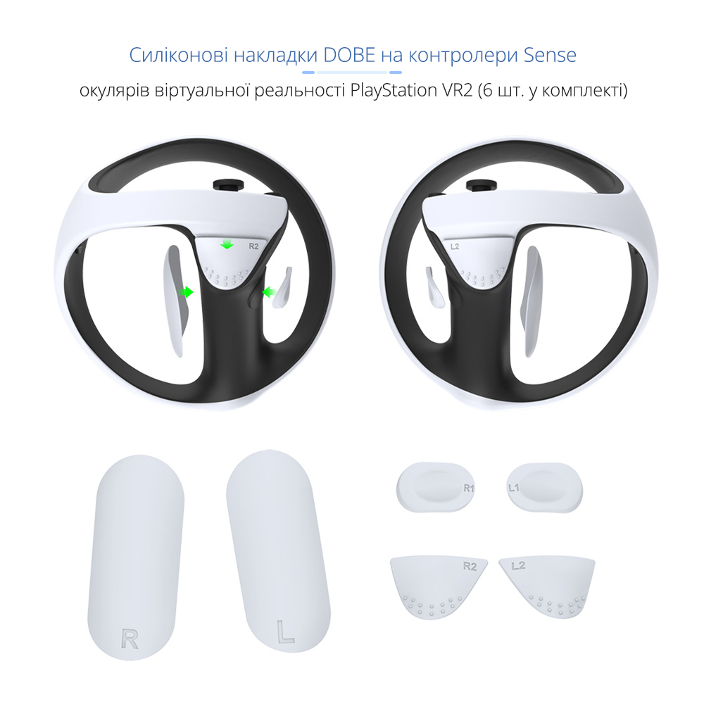 - Комплект силіконових накладок DOBE сумісний із двома контролерами Sense окулярів віртуальної реальності PlayStation VR2;