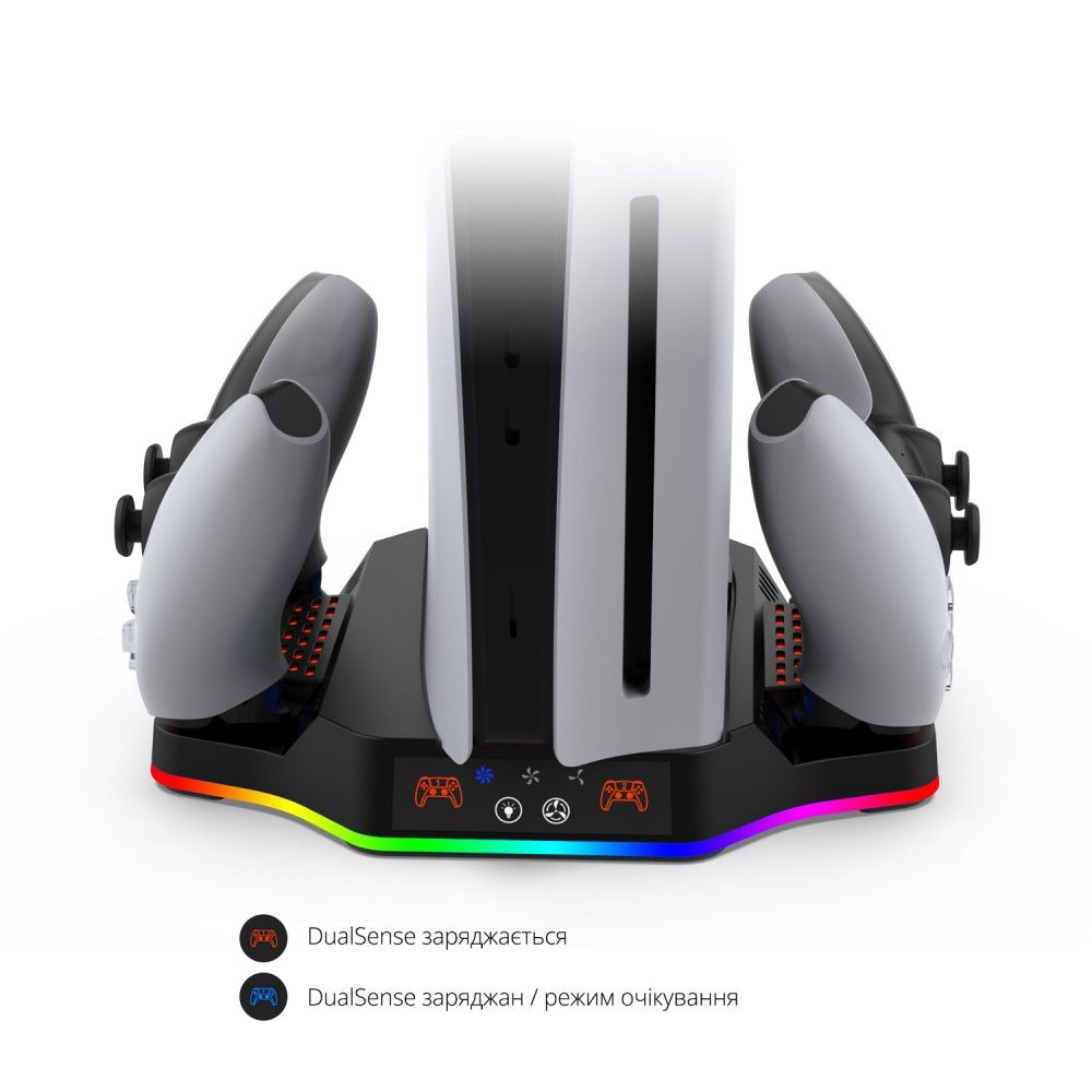 Підставка із зарядною станцією має все необхідне для зручного та комфортного користування консолями