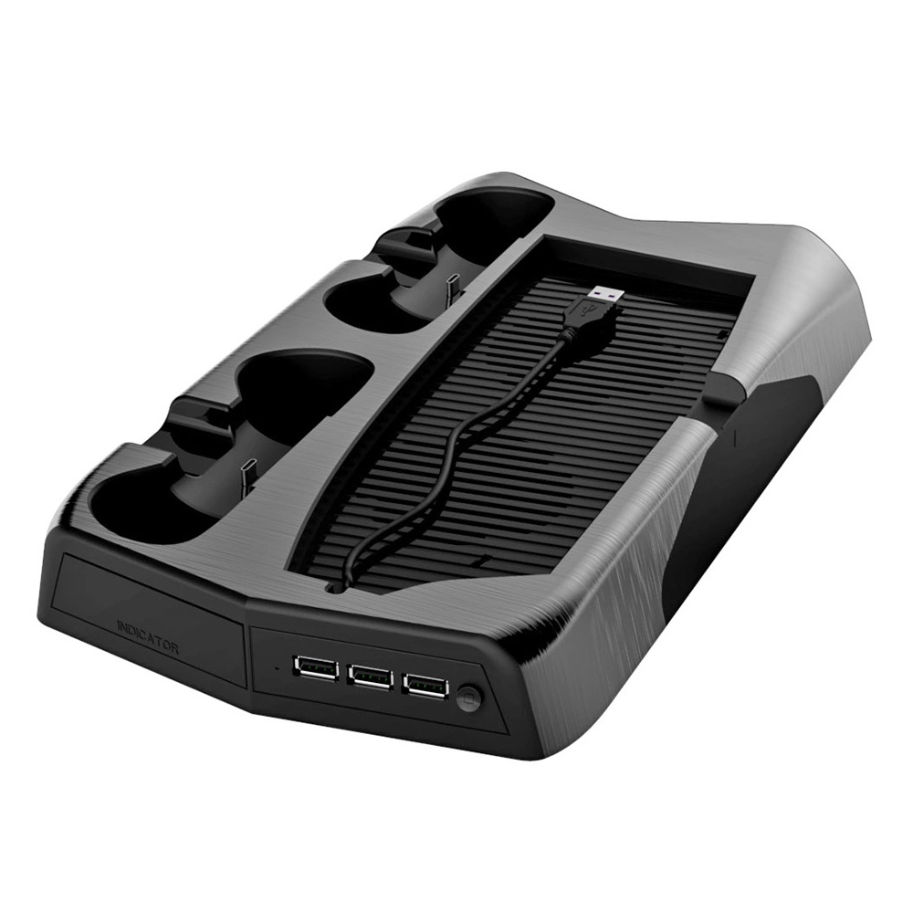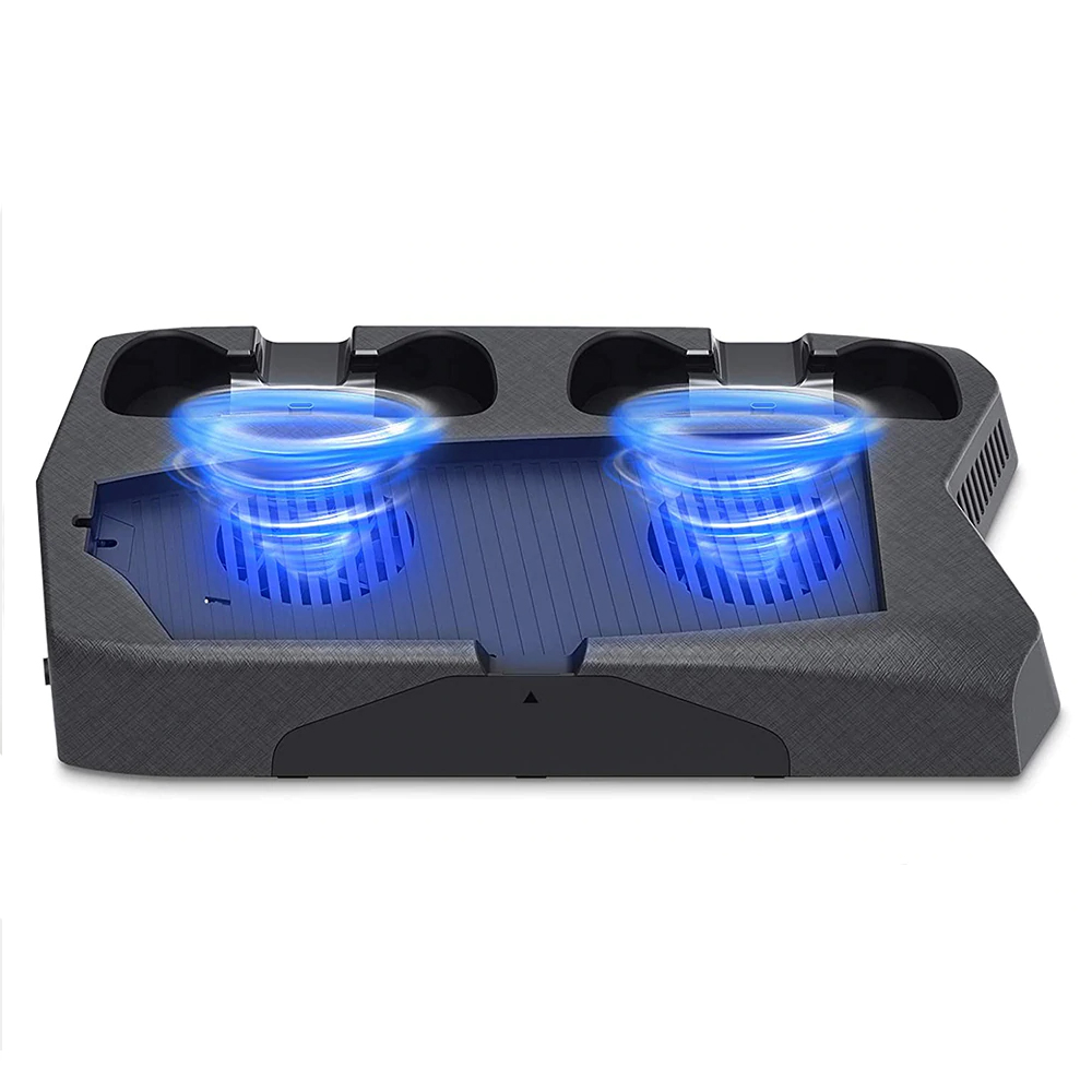 Особливості Подставка совместима с консолями PS5 / PS5 Digital Edition | Два слота для зарядки контроллеров DualSense через встроенные USB Type-C разъемы, три USB разъема-хаба | Два встроенных высокоскоростных кулера для ускорения подачи воздуха и охлаждения консоли (работают тихо) | Питание подставки от USB-портов консоли | Зарядная станция автоматически переходит в спящий режим при уровне зарядки в 100% | Антискользящие накладки под подставкой для избежания появления царапин и скольжения консоли