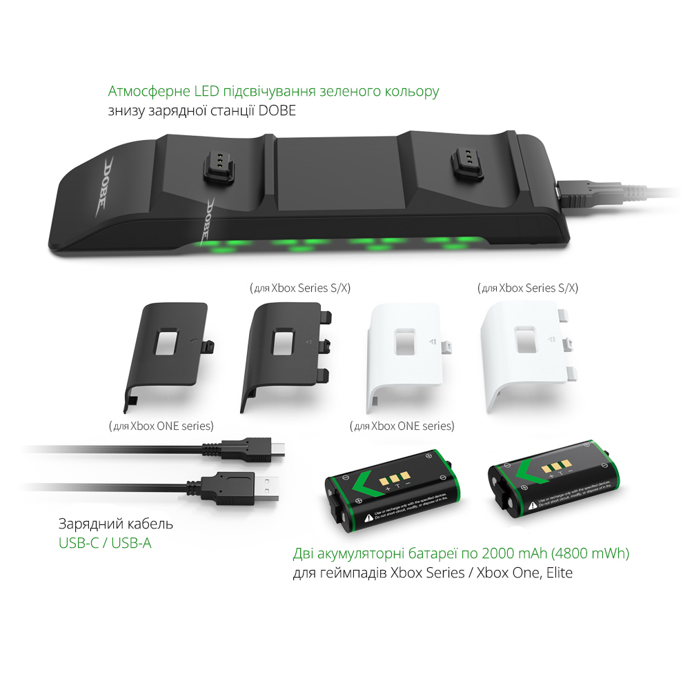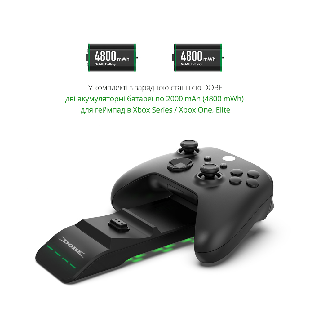 ігрових консолей Xbox Series / Xbox One серій. Завдяки зарядній станції DOBE геймер у будь-який момент буде