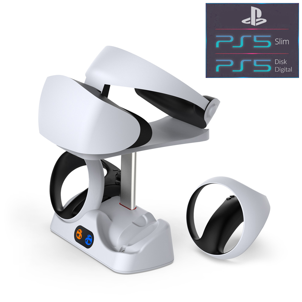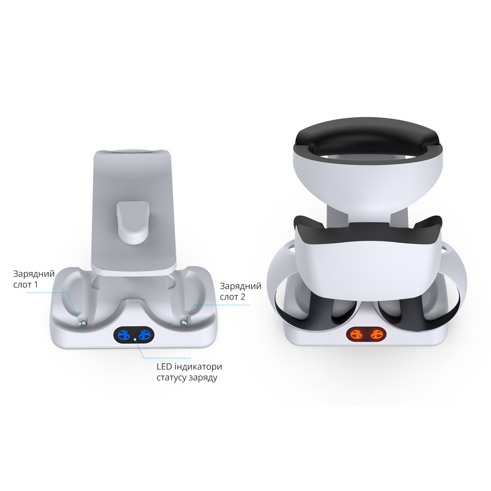 - Зарядна станція DOBE для двох контролерів Sense і окулярів віртуальної реальності PlayStation VR2 покоління PS5/PS5 Slim;