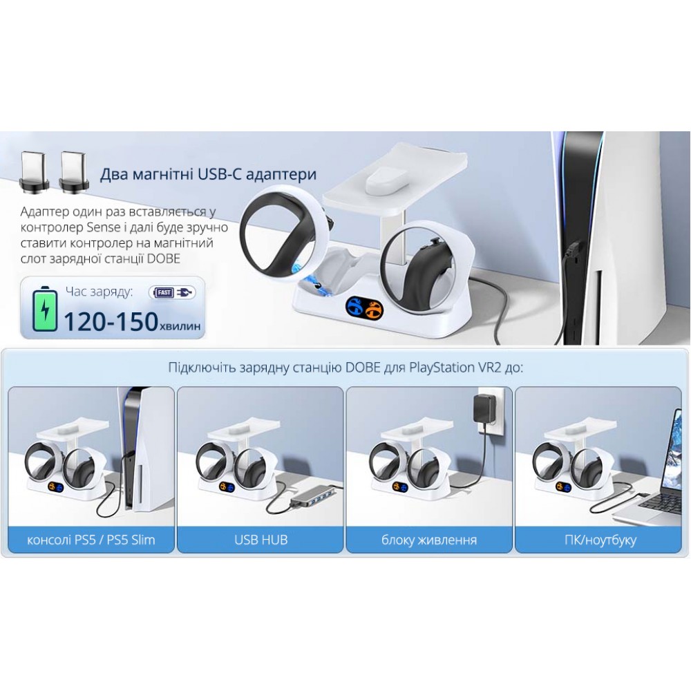 покоління й окулярів віртуальної реальності PlayStation VR2. Завдяки зарядній станції DOBE геймер у будь-який